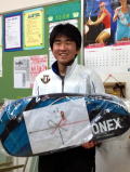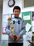 松下和眞君 第2回RJPサーキット 今年2度目の優勝おめでとう。 テニスの力がついてきたんだね。 高校に向けて頑張ろう。 |