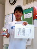 | 倉敷市 小・中学生ジュニアシングルス大会 8/31(土)9/1(日)水島緑地福田公園コート 小学4年生以下の部 男子コンソレ 優勝 右遠 元基(小3) |