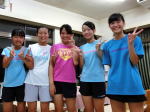 守時慶悟君(左)角野大地君(右) 大きな県タイトルの獲得おめでとう。 GWの大会だったので、OB・OGやそのご父兄の 方々が観戦に来て応援してくださいました。 現役のみんなも、男女を問わず最後まで残って 男子ダブルスの応援をしていましたね。 こういう風景がコーチを支えてくれます。 みんなありがとう。 |