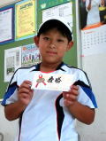 右遠元基君 倉敷市小・中学生ジュニアシングルス大会 小学4年生以下男子コンソレ優勝おめでとう。 これまたホームページ初登場です。これからだね、がんばろう。 |