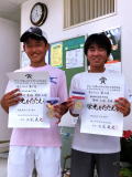 左:守時慶悟君 右:角野大地君 岡山県中学校総合体育大会 男子ダブルス優勝おめでとう。 高校テニスに向けてしっかりベースを上げて行きましょう。 |