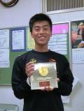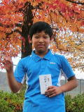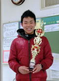 戸坂太紀君 柳生園ジュニアトーナメント コンソレ優勝おめでとう。 ホームページ初登場です。次は本選での勝ち上がりだね。 |
