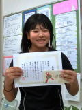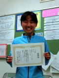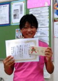 本地望愛さん 倉敷市ジュニア大会 3位入賞おめでとう。本選での入賞よかったですね。 これを励みにがんばりましょう。 |
