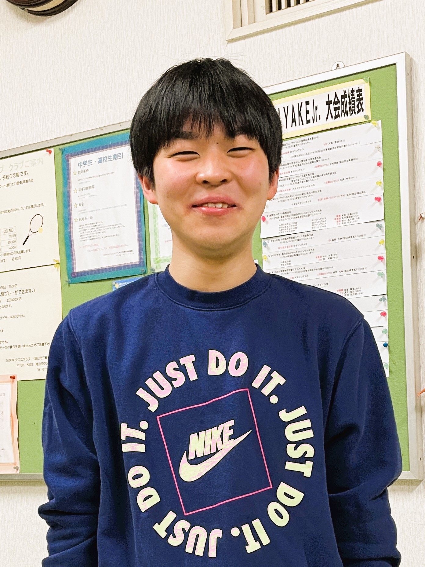 岡山理科大学に進学したことを報告しに来てくれました。大学でも自分に合ったテニスの環境を造れたらいいですね。
