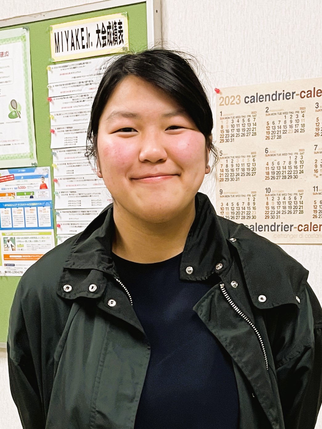テニス部を引退した野口真里も駆けつけてくれました。夢は服飾デザイナーです。