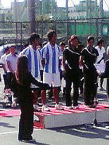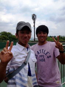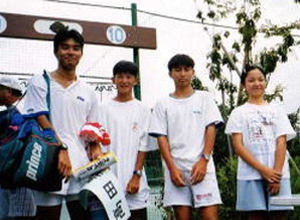 そういえば、中央の粕谷悠紀君は中学生時代に坪田君(ラスタットTC)と組んでいただいたダブルスで1998年全国中学生テニス大会で全国優勝しました。