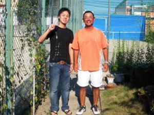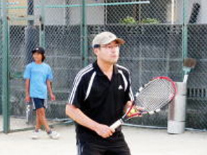 関西高・商大卒でノア倉敷テニススクールコーチ。スクールのイベントがあって声からして来てました。相変わらず体当たりだな。