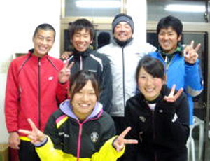 杉井 和広(後列左から1番目)、遠藤 隆行(後列中央)、遠藤 佑哉(後列右から1番目)、久間 陽子(前列左から1番目)、佐藤 彩加(旧姓:深井)(前列右から1番目)