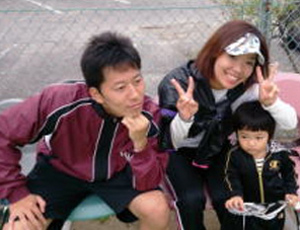 左から草加敏裕・佐藤彩加(旧姓:深井)と息子の謙信君