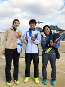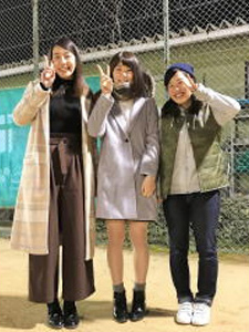 粟井美帆(岡山大医学部保健学科テニス部2年)、前﨑直哉(法政大学テニス部3年)、竹原明里(武庫川女子大学テニス部2年)②