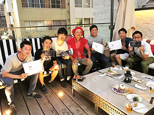 マメに会の写真を撮ってくれました。いつも地味に働いてくれてありがとう。阪急の運転手さんに昇格おめでとう。みんなを安全に運んでくださいね。
