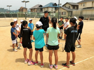 仙台から帰岡して、後輩たちの相手をしてくれました。小さいころからテニスセンスがありましたが、とても優しいお兄さんになっていてよく後輩を指導してくれました。
