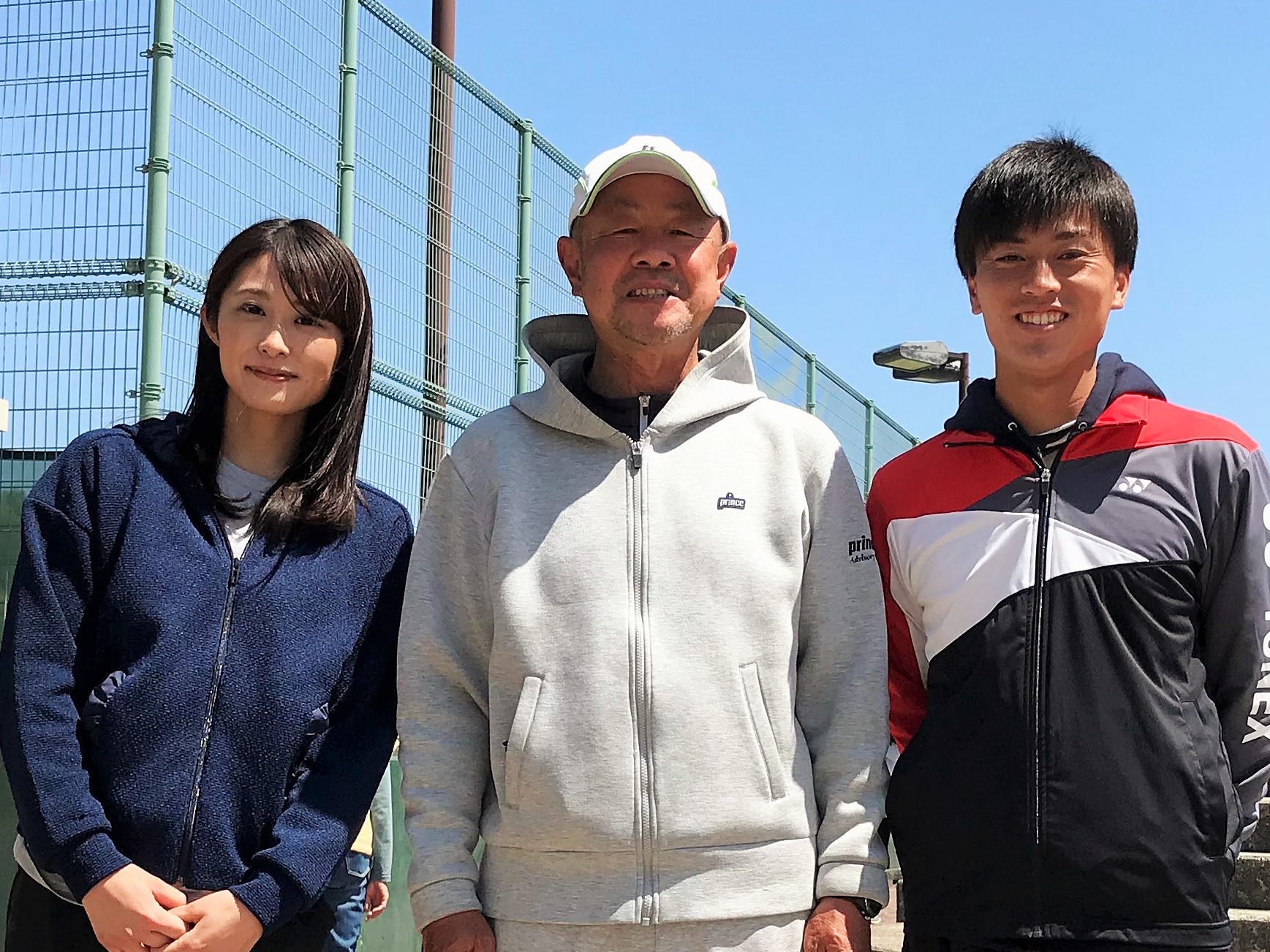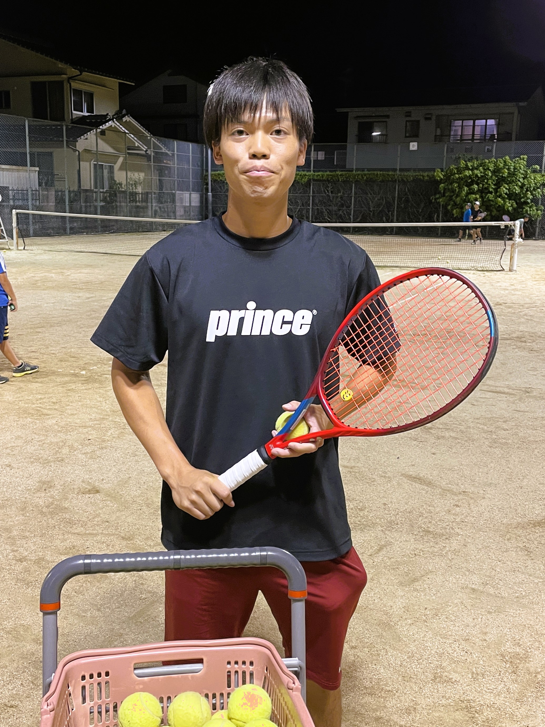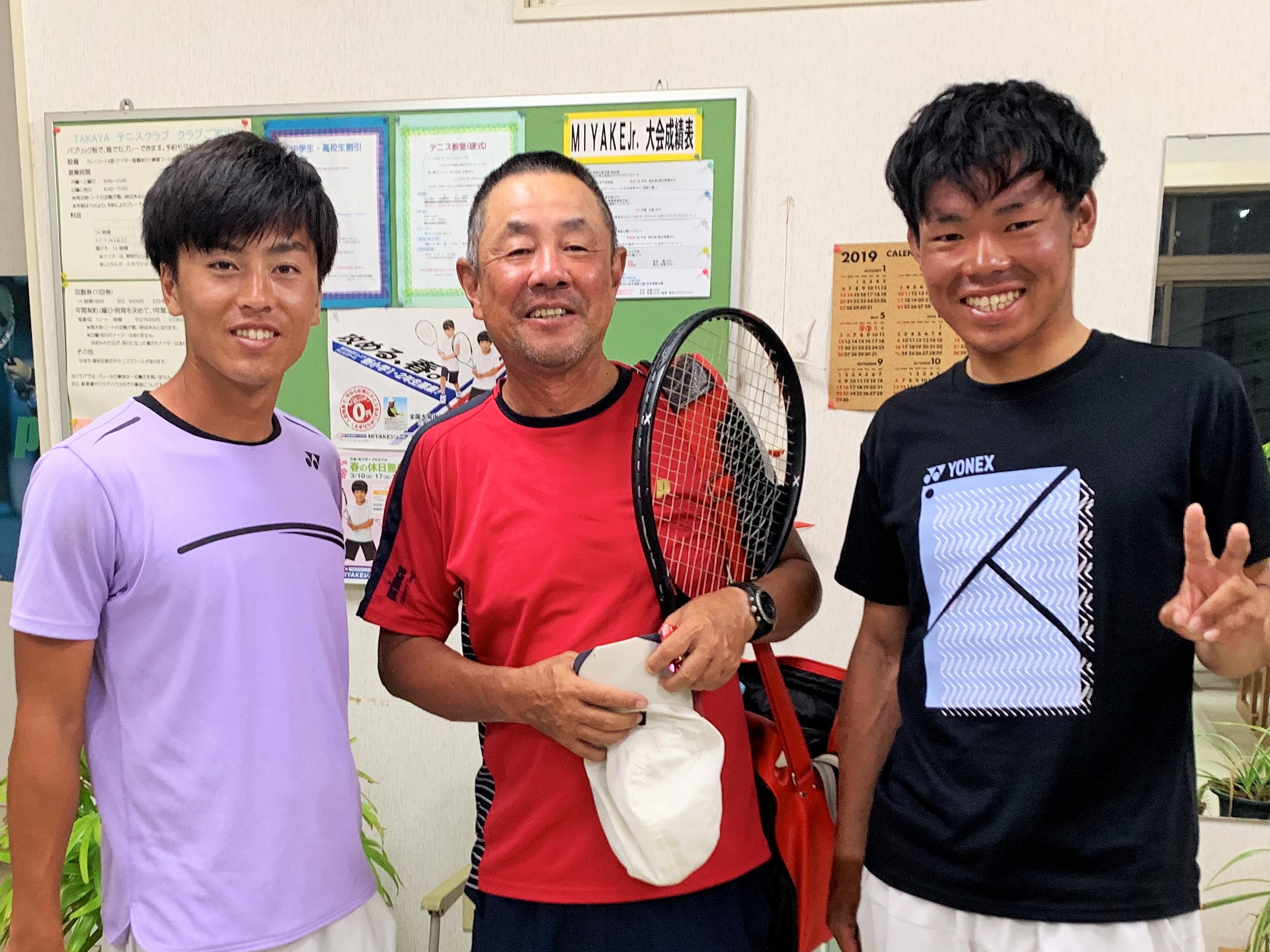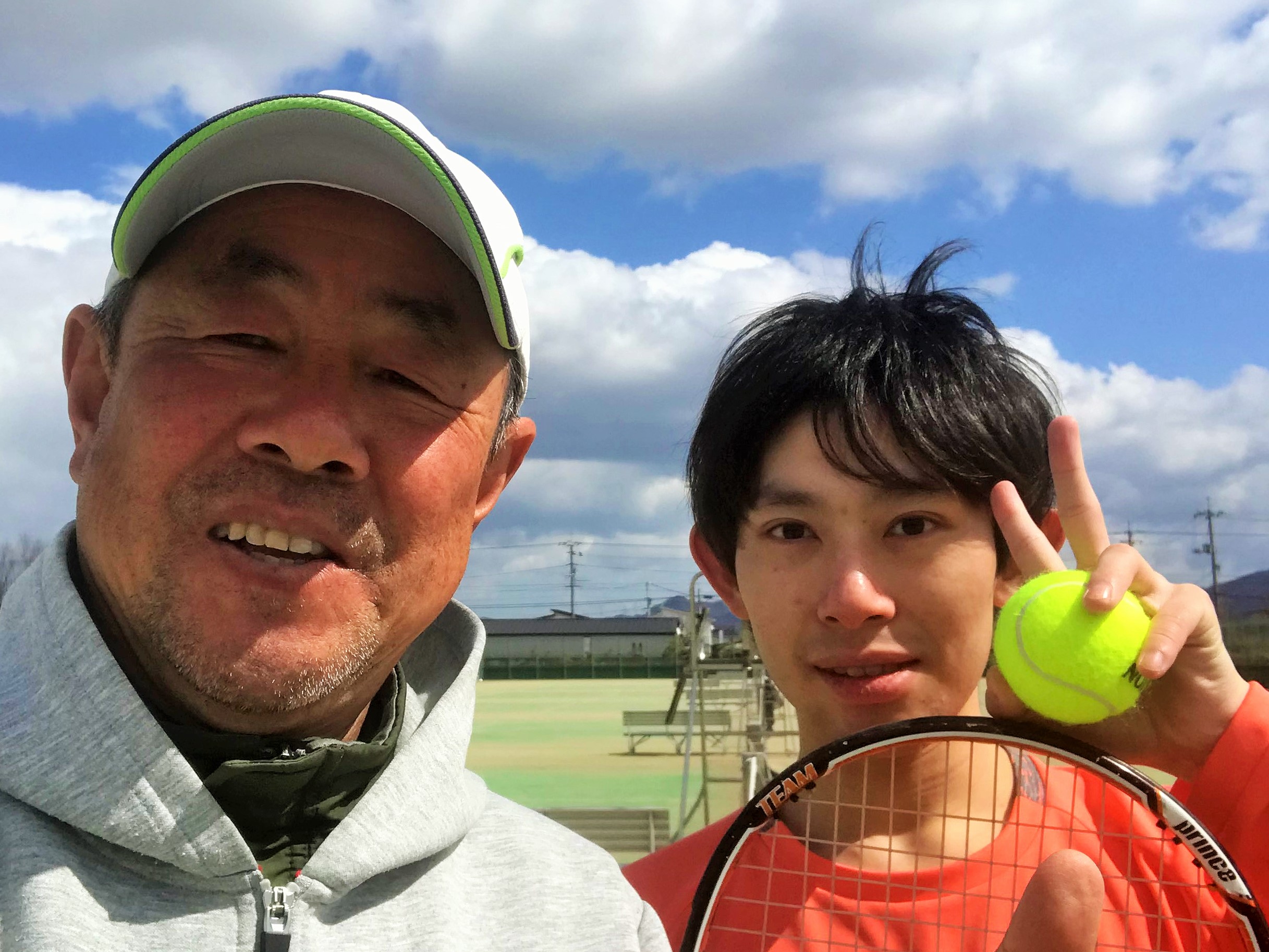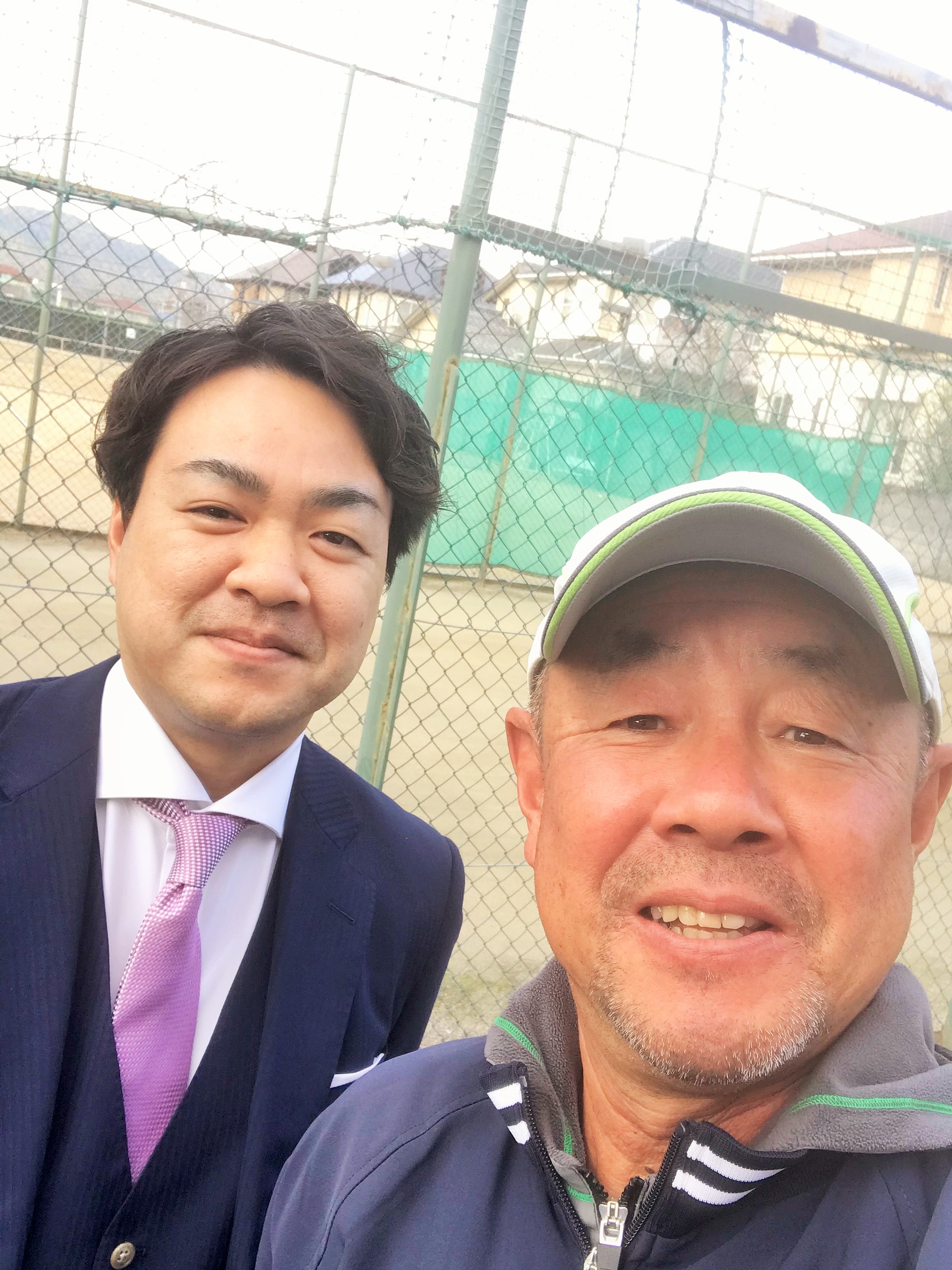 三宅コーチの岡山での最初の教え子です。高校から岡山を出て湘南工科大学附属高等学校に通いながら荏原湘南スポーツセンターへ。慶應義塾體育會庭球部では主将を務め、全日本学生室内のダブルスで日本一になりました。海外遠征の時の話や出来立ての備前テニスセンターで開催されたRSK全国選抜ジュニアの全国大会で優勝を狙っていたのに3位でおわり悔しい思いをした話など、いろいろな懐かしい会話をしました。