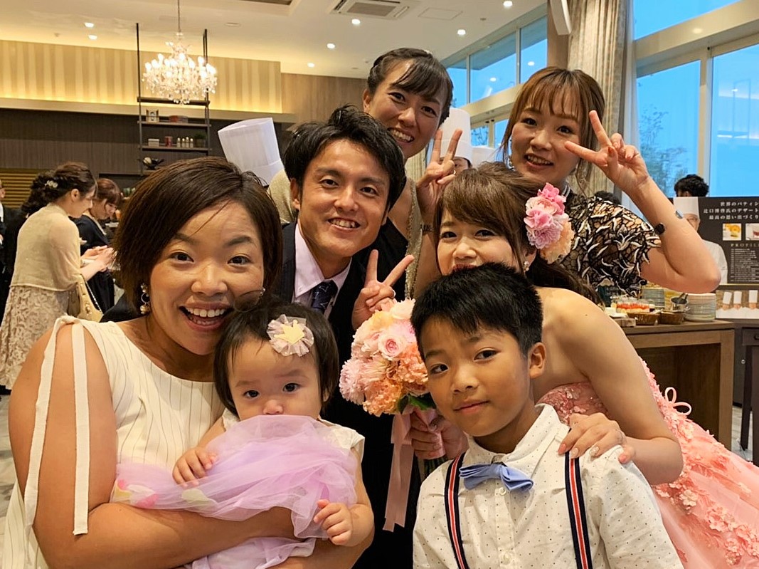 中央右:森川優夏(旧姓:本地)は高校時代からお付き合いしていた方とゴールイン。生後3カ月の女の子”いと”ちゃんを連れて来てくれました。