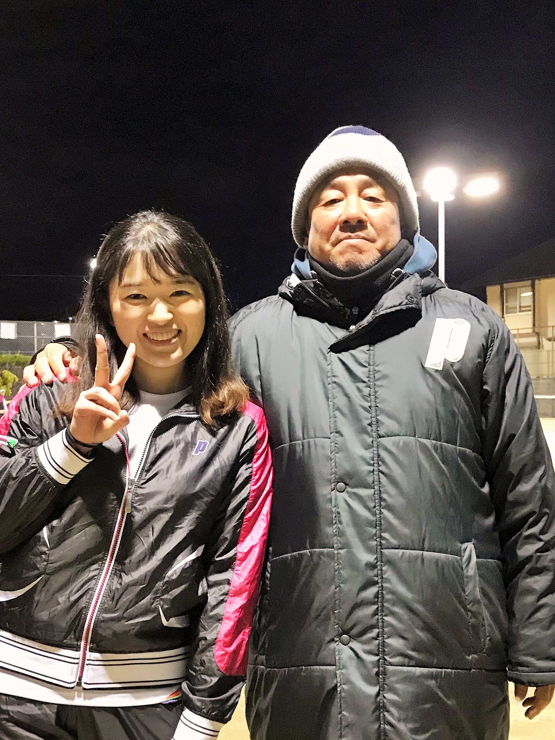 左:遠山成美(岡山県立倉敷工業高等学校女子テニス部監督1年目)